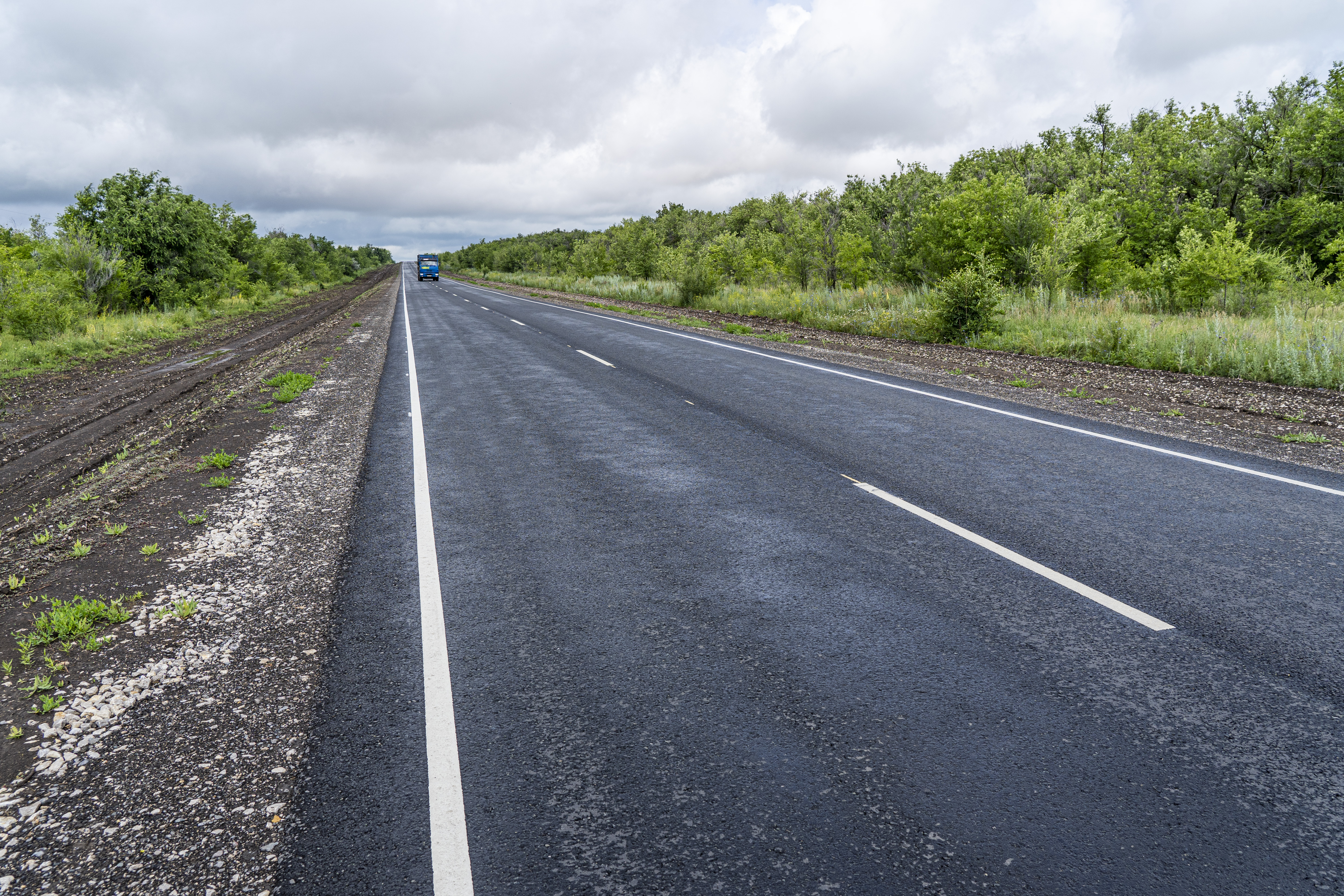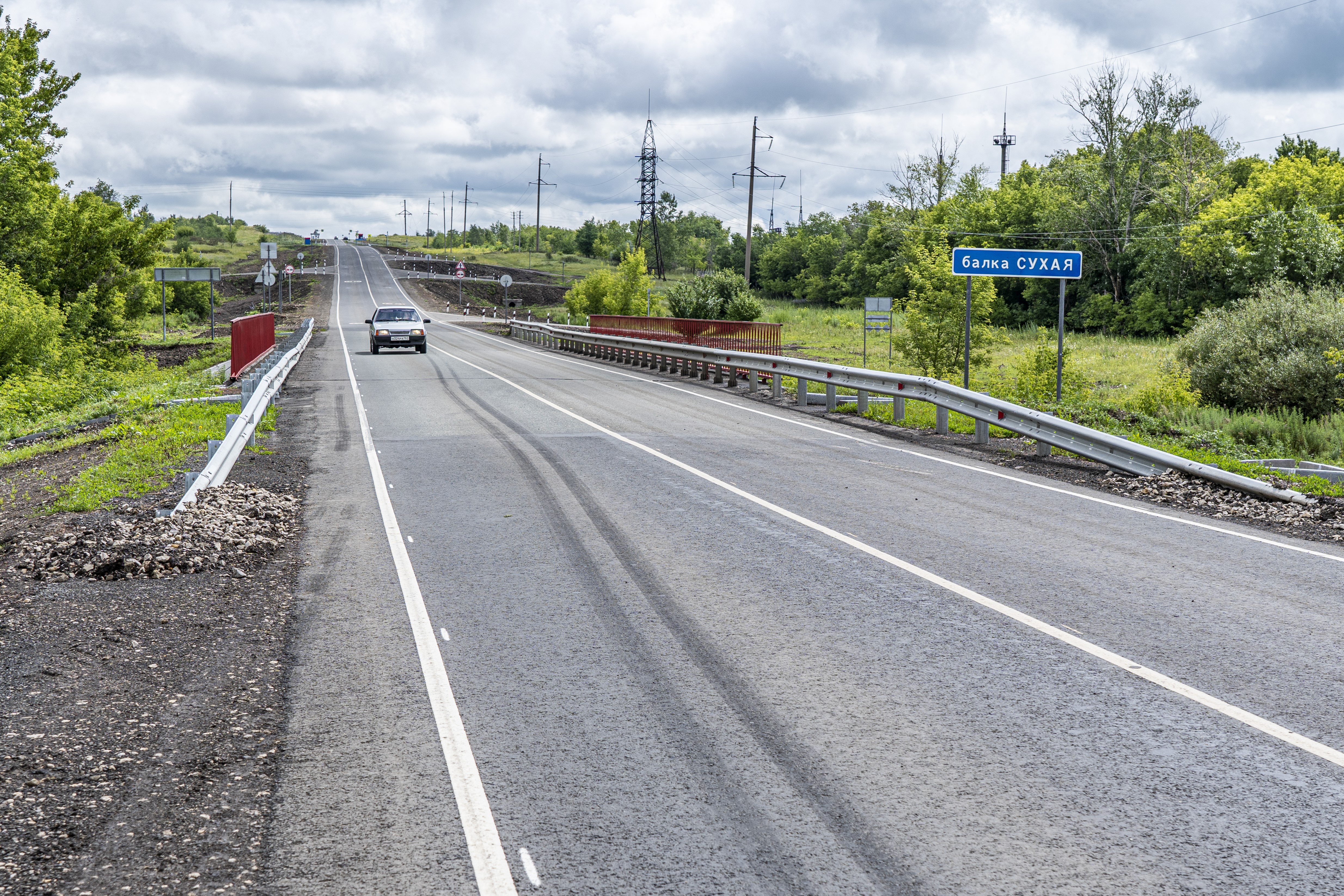 В этом году подрядчик уложил верхний слой дорожного покрытия, укрепил обочины, установил барьерное и пешеходное ограждения, нанес разметку термопластиком.